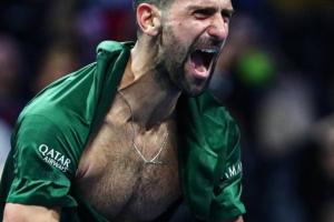 夺冠后,德约撕开球衣激情庆祝,露出狂野胸毛。